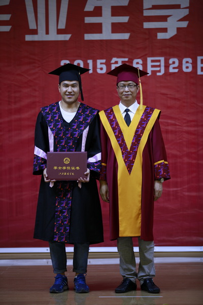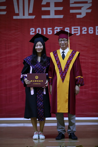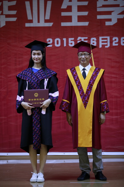 在郑建文发言结束后,激动人心的时刻到来了。院长陈万龙走上主席台,为2015届500多名本科毕业生一一颁发了学士学位证书,拨正流苏,并一一合影留念。