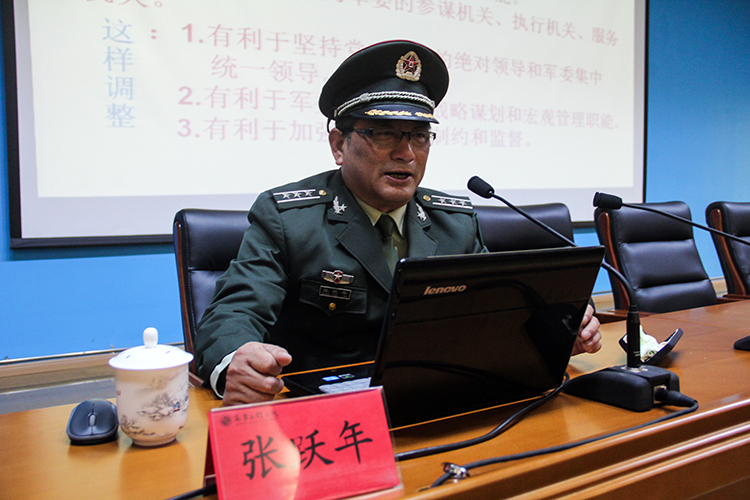 宣讲会上,张教授紧紧围绕国家新时期国防形势与任务,用引人入胜的语言、生动形象的例证,宣讲了国防形势以及军队现代化建设对高素质人才的时代召唤、大学生服兵役的法律义务、国家的相关优惠政策等内容,鼓励大学生树立保家卫国、贡献祖国的国防意识,寄语广大学子响应国家号召,迈入绿色军营,献身国防事业。张教授告诉同学们,参军入伍是促进学生成长成才的磨练平台,是同学们增强意志、砥砺品格的好课堂,一件利国利教利大学生的好事情。