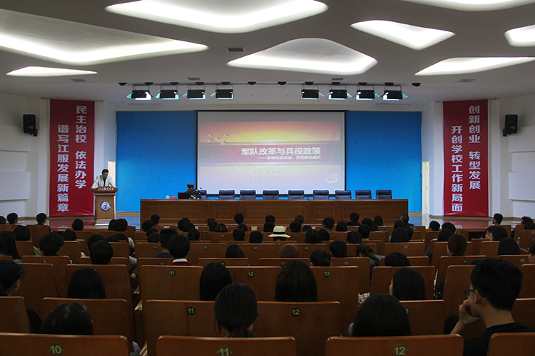 服装报讯(记者/刘嘉惠 摄影/余婷) 4月28日下午,我校邀请江西国防教育宣讲团成员、南昌工程学院人武部部长张跃年教授来校为同学们作了“助推高校征兵改革,走进万象城平台”的国防教育宣讲会。