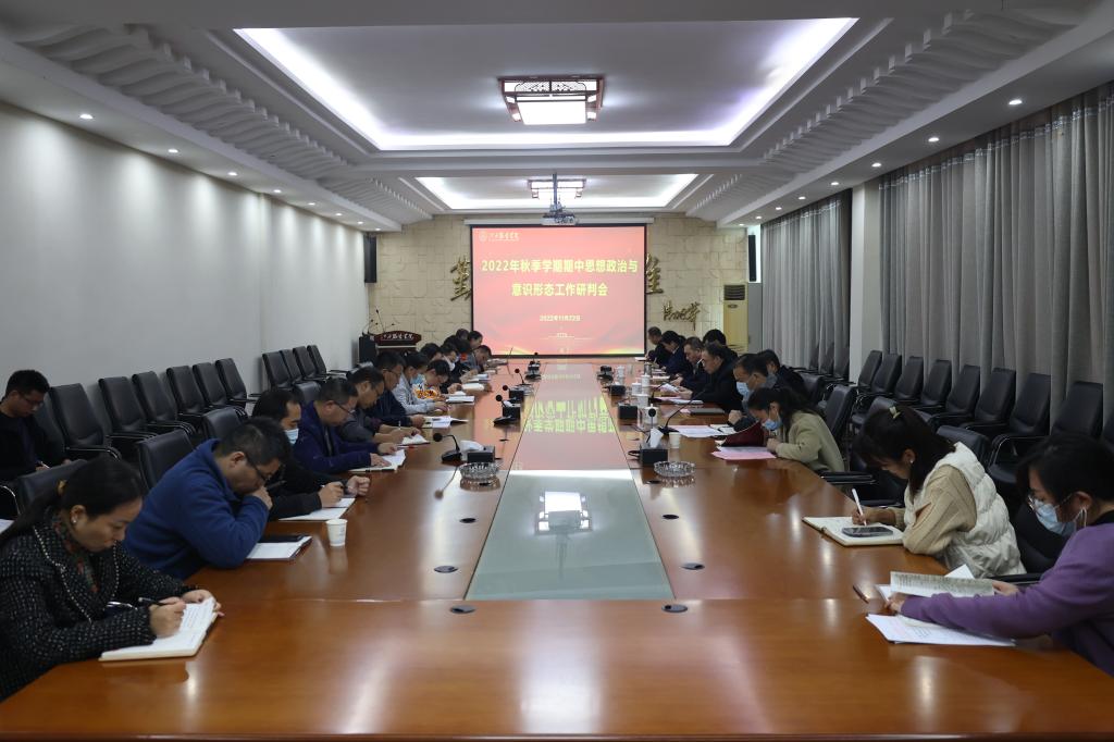 党委副书记唐新强传达了省委教育工委关于意识形态工作考核意见,并通报2022年秋季学期期中学校意识形态工作情况。他指出,要进一步落实意识形态主体责任,坚持守土有责、守土负责、守土尽责,宣传部门要加强统筹,各单位要进一步明确主体责任,加强协作配合。要进一步完善制度建设,根据意识形态领域的新情况、新变化、新特点,重点抓好理念创新、手段创新;要高度重视,把整改工作真正落实到位,不断创新工作方法,以极大的责任感、使命感、紧迫感,一件一件抓好落实,做细做实,做到师生的心坎上,推动学校思想政治工作和意识形态工作迈上新台阶。