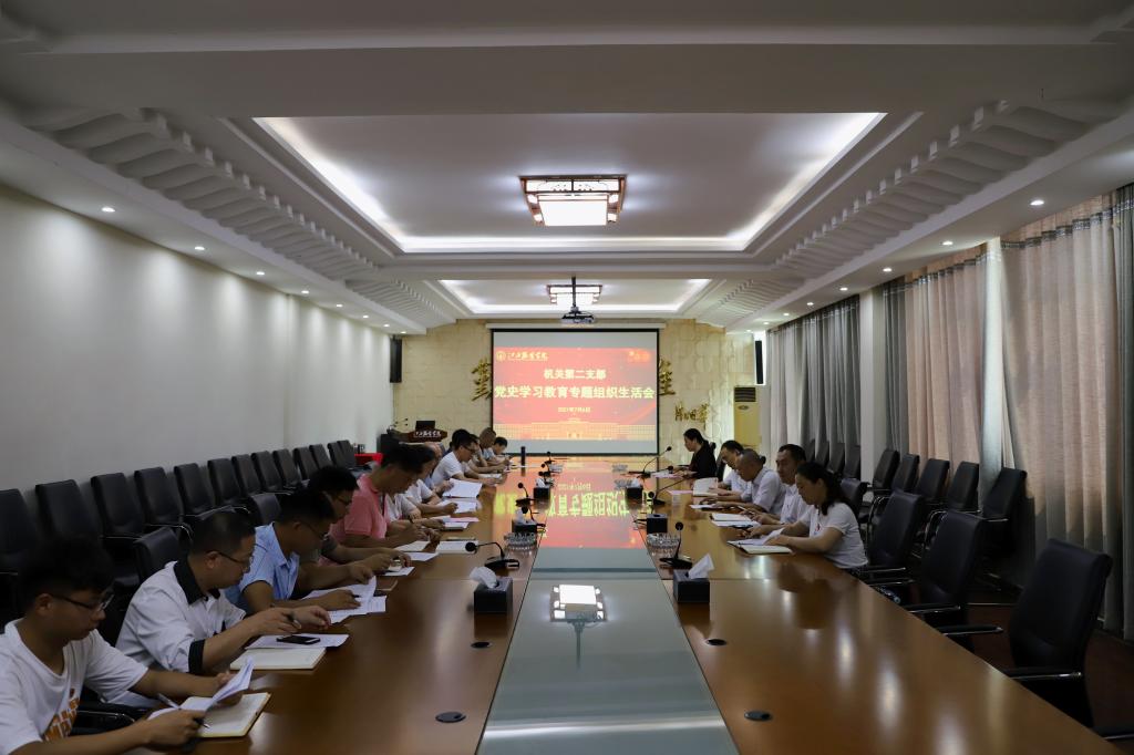 新闻中心讯 7月6日下午,我校机关第二支部在行政楼二楼会议室召开党史学习教育专题组织生活会。省委第九巡回指导组第六指导小组副组长黄泽友列席和旁听了组织生活会。校党委书记陈付龙以一名普通党员身份参加支部专题组织生活会。会议由支部书记曾冬秀主持。