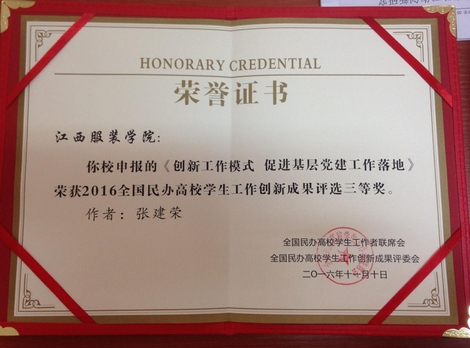 近日,由全国民办高校学生工作者联席会主办的第五届全国民办高校学生工作创新研讨会在广西桂林举行,大会表彰了2016年全国民办高校学生工作创新成果,我校学工处张建荣申报的《创新工作模式 促进基层党建工作落地----万象城平台持续推进党建联合会建设》荣获三等奖。
