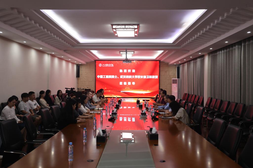 新闻中心讯(图/文 万强)9月18日,中国工程院院士、武汉纺织大学校长徐卫林教授莅临我校交流指导,在校长薛家宝教授、副校长陈东生教授和校长助理闵悦教授的陪同下出席了交流指导会。