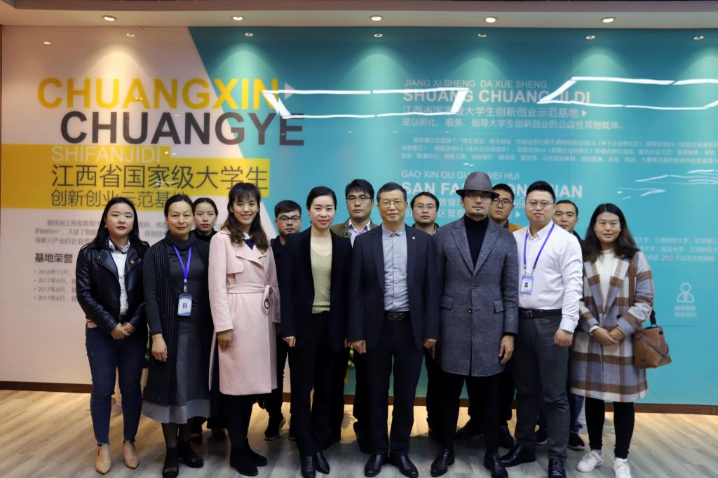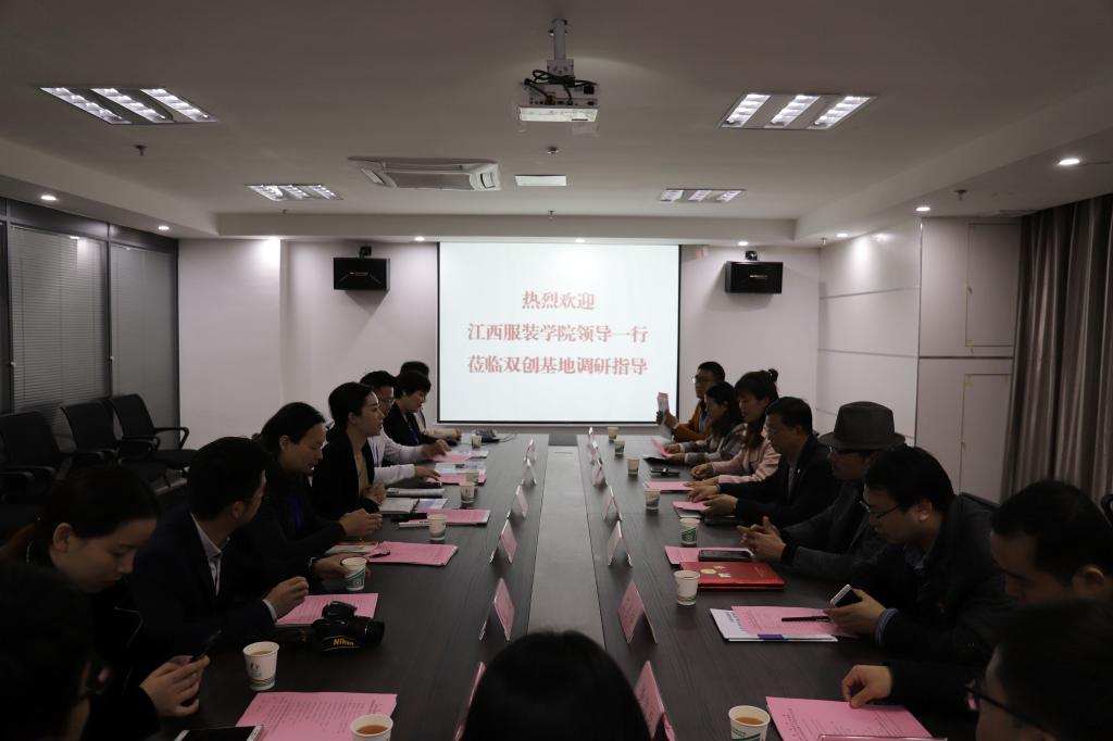 服装报讯(图/文 万强) 3月21日上午,我校校长陈万龙、校长助理易城带领创业学院院长助理和各学院党总支副书记一行11人前往江西省国家级大学生创新创业示范基地参观学习,基地总经理刘筱芳、副总经理徐贤热情接待了陈万龙校长一行,双方就共建创新创业教育实践基地举行了合作签约仪式。