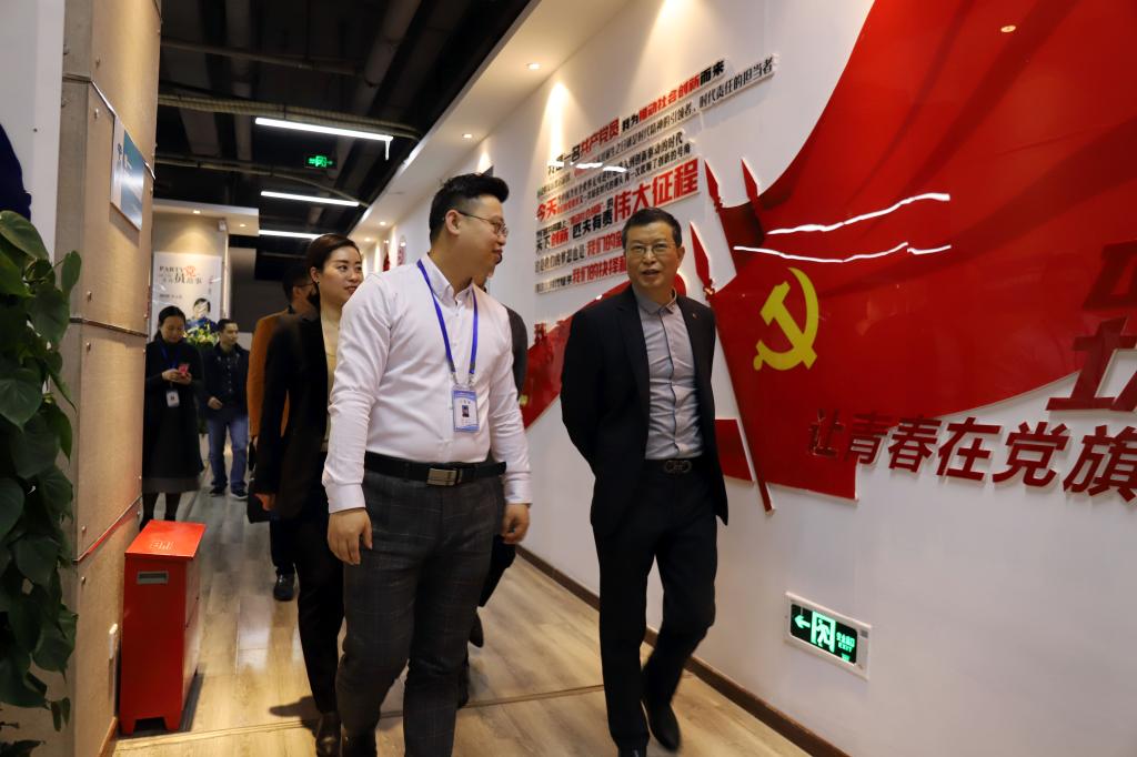 陈万龙校长一行先后参观了该基地创客空间1.0(种子企业孵化区)、创客空间2.0(初创企业成长区)、创客服务2.5(创业企业服务区)、创客空间3.0(成长企业加速区)、创客空间4.0(规模企业培育区)等阶梯式孵化基地,对基地的创业孵化模式和党建工作深度融合深表赞同。