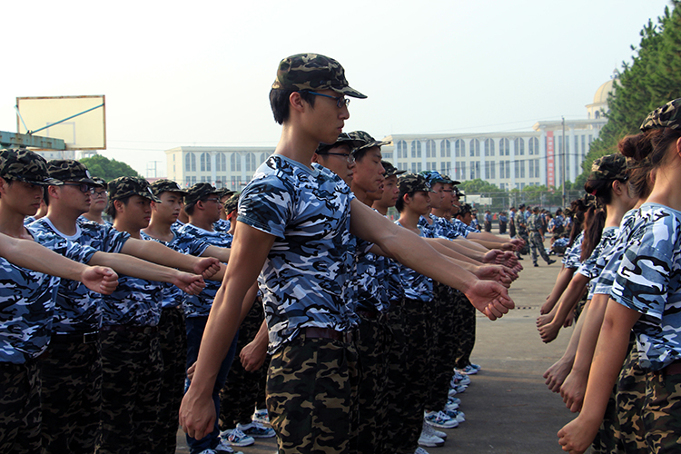 从校训石往田径场走,一排排整齐排列的军训外套非常吸睛,据了解这是设计1连的万教官教同学们叠的。军训伊始,万教官就教同学们折叠自己的衣服,他认为这有利于规范学生的纪律。服装设计分院党总支书记梅金妹说:“万教官对学生严而有方,带队很有一套。他带队,我们都很放心。”太阳升起来了,万教官带着百人连队走到太阳底下,接受阳光的洗礼。“设计1连,势必争先,众志成城,勇往直前!”嘹亮的口号配合脚下的脚步声,积极向上的气息扑面而来。