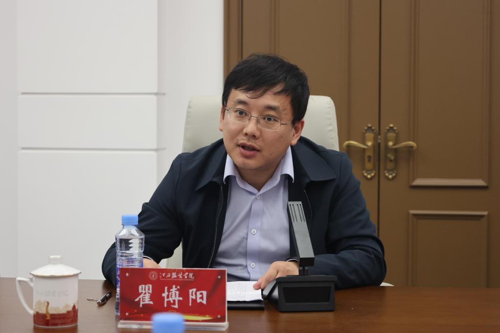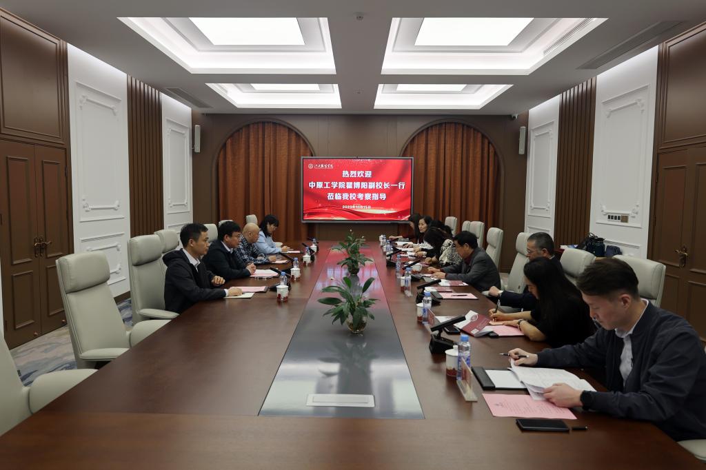 瞿博阳副校长对我校热情接待表示衷心感谢,从特色骨干学科群建设、科研平台、师资队伍、科研项目和发展规划等方面介绍了中原工学院的基本情况,提到学校以高标准筹建河南电子科技大学为目标,以博士学位授权立项建设为牵引,深化人才培养机制改革,构建适应新时代发展需要的高质量人才培养体系,优化学科结构布局,坚持特色发展,实施分类管理,不断提升学科综合实力,全面推动学校学科建设与研究生教育高质量发展,努力实现更名大学、博士授权的阶段性奋斗目标。并对两校的硕士研究生联合培养工作表达了殷切希望,相信在双方的共同努力下,两校的合作将取得更加丰硕的成果!