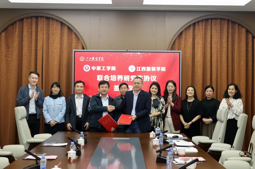 新闻中心讯(学科处供稿 摄影/万强) 为提升我校学科建设和人才培养水平,积累硕士研究生教育经验,10月15号下午,我校与中原工学院硕士研究生联合培养签约仪式在国际交流中心3205会议室举行,我校校长薛家宝、校长助理李沛武、校长助理闵悦,中原工学院瞿博阳副校长、服装设计学院院长刘让同、研究生处副处长张雪松、服装学院副院长罗云出席签约仪式,我校相关职能部门、部分学院负责人参加会议。仪式由学科处处长甘文主持。