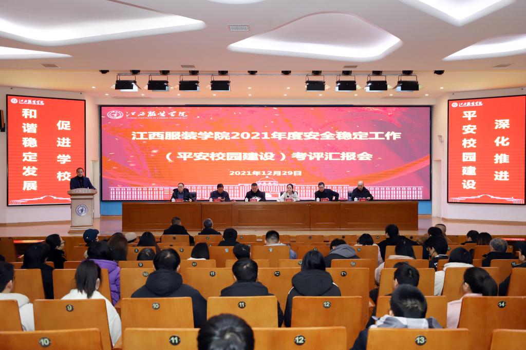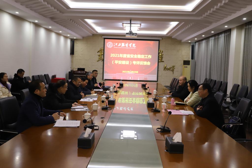 (新闻中心讯) 12月29日下午,由江西省信访局二级巡视员吴青宜为组长,省委政法委二级调研员廖小平、省信访局四级调研员刘余军为成员的省平安建设工作考评组一行3人,对我校2021年度平安建设(综治工作)进行了考评。学校理事长涂顺强、党委书记陈付龙、校长薛家宝和全体在家校领导出席考评会议。全体中层干部及师生代表300余人参加考评会。考评会由党委副书记唐新强主持。