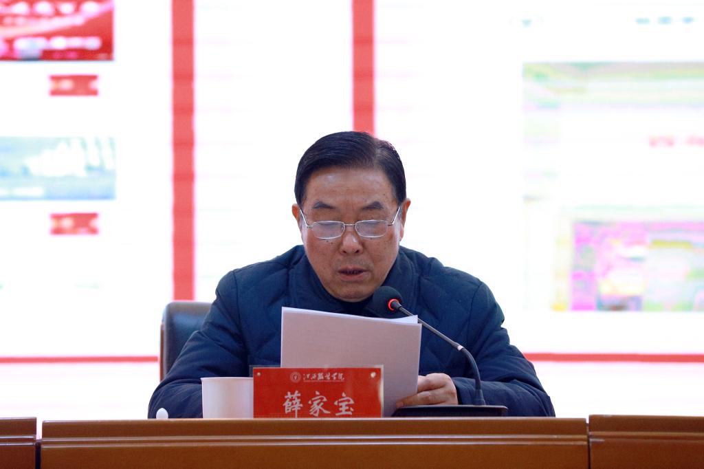 校长、校委会主任薛家宝以“建设更高水平的‘平安校园’ 为推进学校高质量发展保驾护航”为题作学校2021年平安建设工作报告。报告从“平安校园”建设工作的认识、“平安校园”建设推进学校高质量发展的成效、“平安校园”建设工作主要措施、2021年“平安校园”建设存在的问题、2022年“平安校园”建设工作的打算五个部分详细阐述了学校深入推进2021年度平安建设(综治工作)情况。报告介绍了我校2021年综治工作开展的具体举措。通过六个“做到位”,牢牢守住校园安全底线:一是责任落实做到位,安全工作事事“有人管”;二是预防演练做到位,重大活动件件“有预案”;三是资金投入做到位,安全保障处处“有升级”;四是严格监管做到位,安全防控能力“有提高”;五是教育引导做到位,安全教育实施“有创新”;六是警校联动做到位,校地机制建设“有突破”。通过六个“进一步”,推进平安校园质量提升:一是阳光透明,进一步建设招生就业“阳光道”;二是家校共育,进一步构筑心理建康“防护墙”;三是严格规范,进一步畅通奖助学贷“圆梦路”;四是创新载体,进一步抓牢意识形态“主阵地”;五是关心关爱,进一步打造民族团结“共同体”;六是搭建平台,进一步拓宽信访工作“新渠道”。