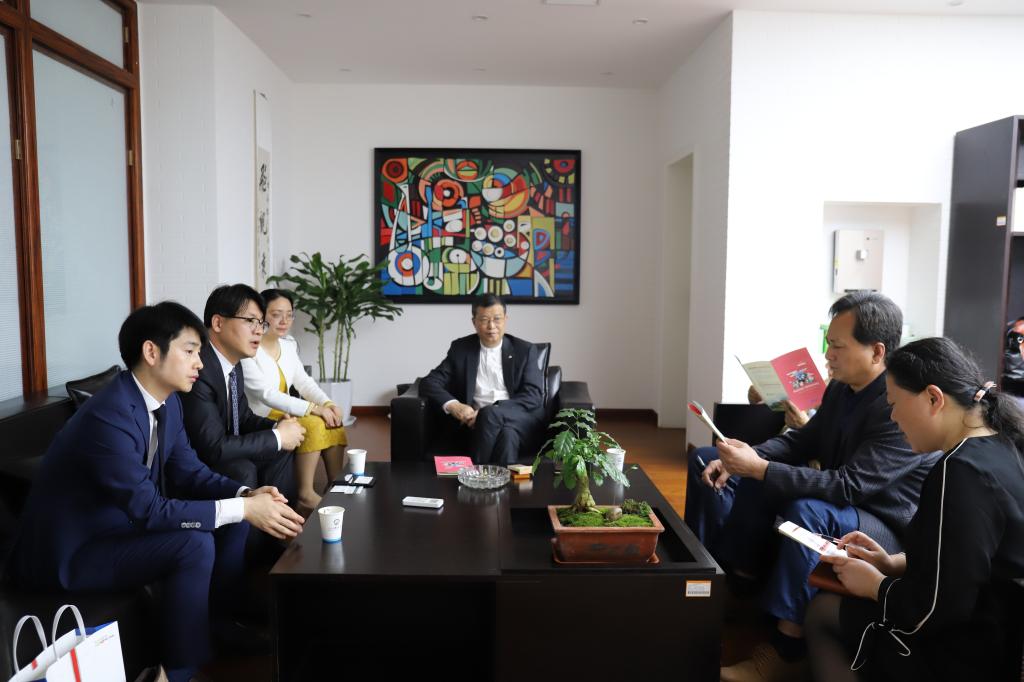 服装报讯(国际交流中心) 4月24日,韩国培才大学国际处处长李焱求一行莅临我校考察交流,校长陈万龙、副校长陈东生、总督学王德保热情接待了来宾。