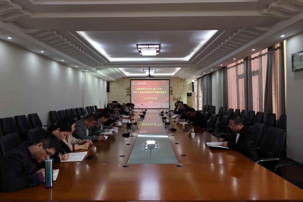 会上,党委副书记唐新强传达学习了《中国共产党第十九届中央委员会第六次全体会议公报》,从全会概况、《决议》基本框架和重大意义等方面对党的十九届六中全会精神进行了全面系统的解读。