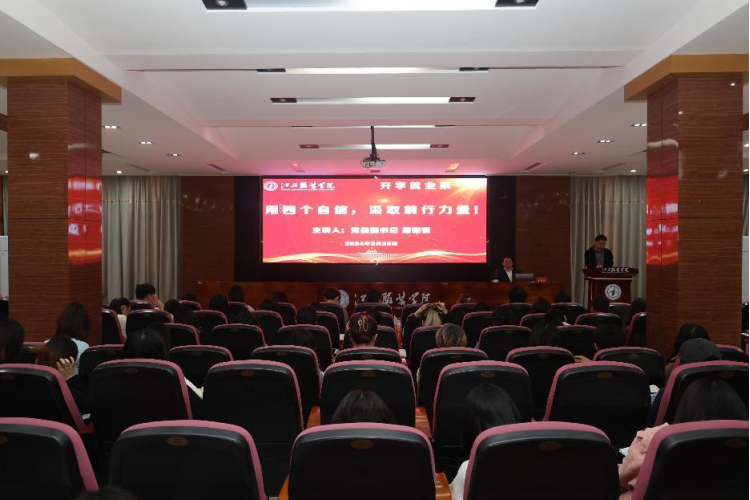 新闻中心讯(就业处供稿)为深入贯彻江西省教育厅《关于开展2024届全省高校毕业生就业育人系列活动的通知》,开展就业育人主题活动,充分发挥就业育人实效,全力促进毕业生更加充分高质量就业。3月29日,校党委副书记唐新强以“用四个自信,汲取前行力量”为主题的“开学就业第一课”在校行政楼一楼报告厅正式拉开帷幕,各学院学生代表、辅导员、就业处老师一起聆听授课。本次课程旨在引导广大学生理解“四个自信”的意义,树立正确的就业观和择业观,帮助学生更好地规划自己的职业生涯,提升就业竞争力。