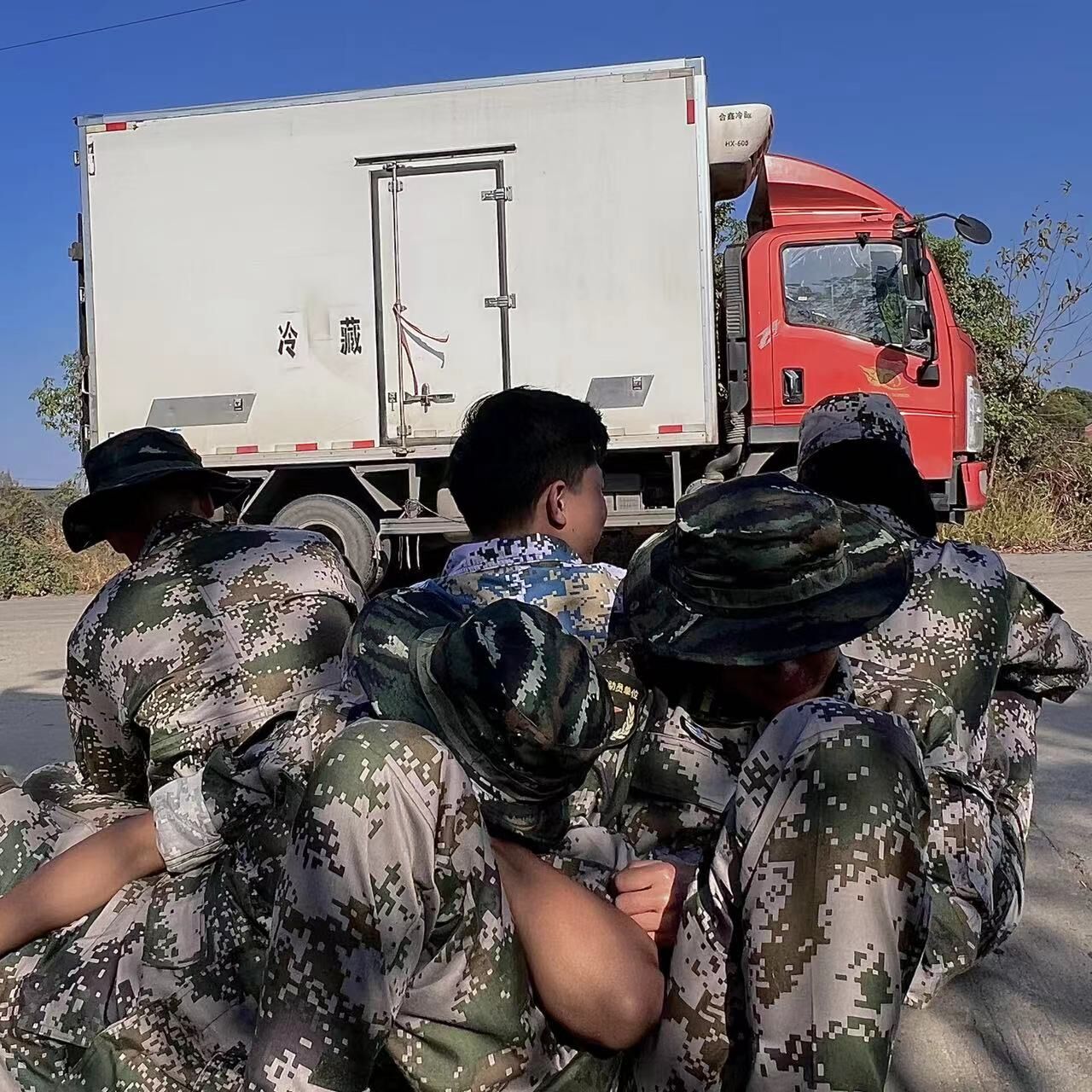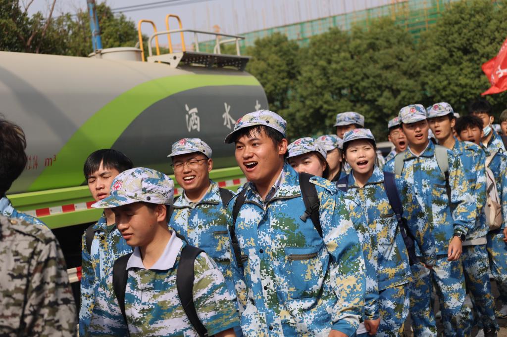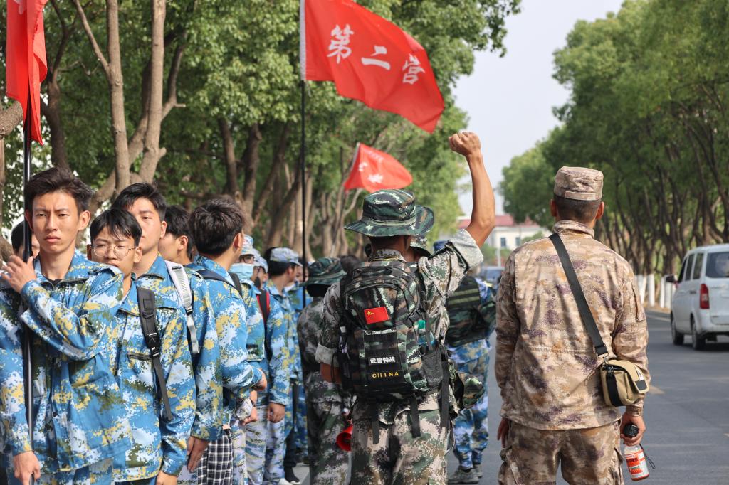 虽然天气闷热,路途遥远,但同学们的斗志依然昂扬,唱着军歌、喊着口号,互相加油打气,坚持完成了14多公里路的行军拉练。