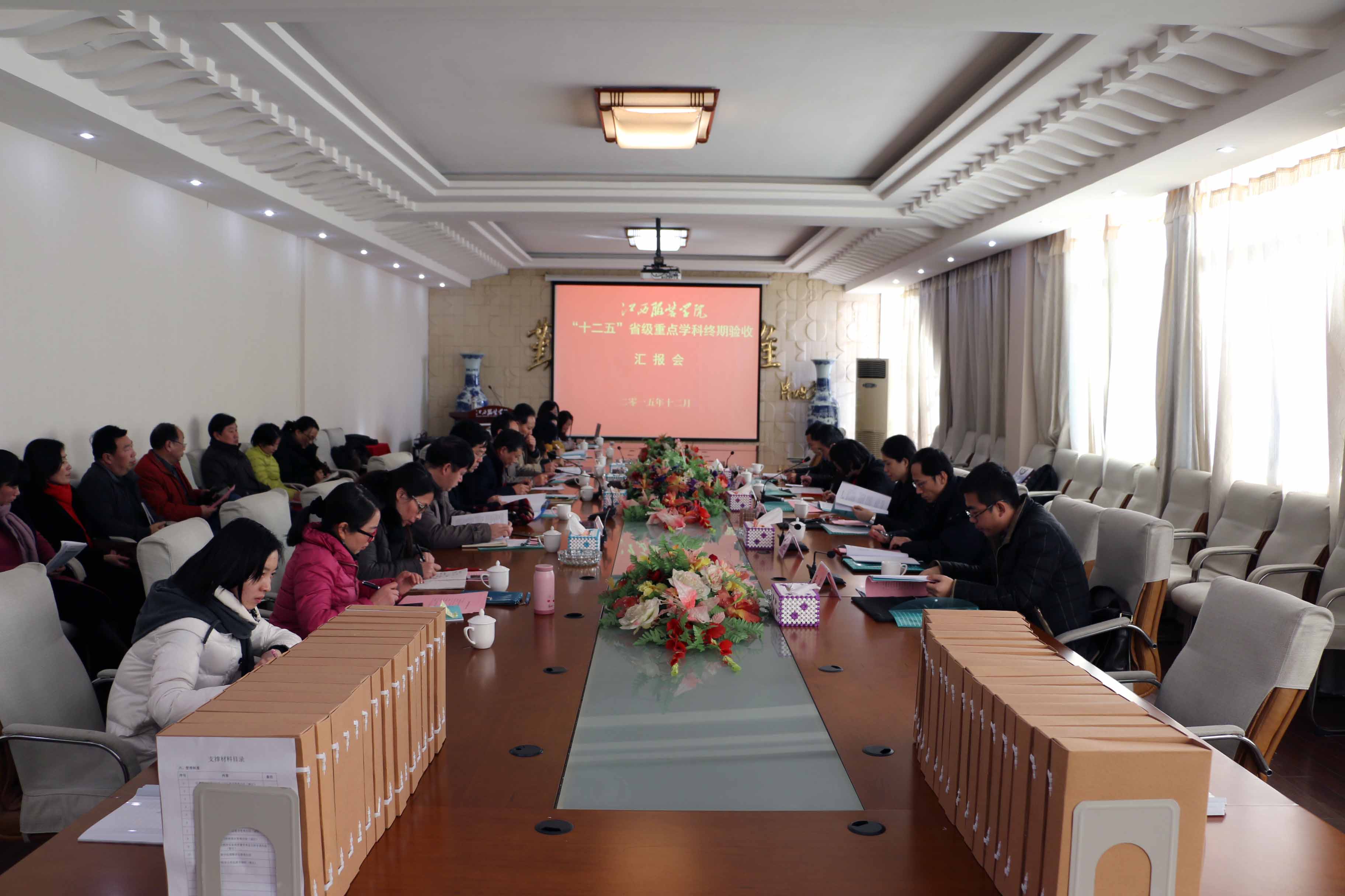 学术委员会主任温容祯向验收组专家汇报了我校重点学科建设情况。他简要介绍了学校的历史沿革,并从学科分类、机构设置、队伍建设、经费保障、主要成效等方面详细介绍了我校“十二五”省重点学科的建设与管理情况。温主任表示,我们将以此次重点学科验收为契机,虚心听取专家们的意见,在认真总结“十二五”的基础上,学习兄弟院校的建设经验,进一步加大学科建设步伐,凝练学科特色,构建学科体系,打造优势学科,为学校的转型发展和建设有特色高水平应用技术型本科高校而努力。