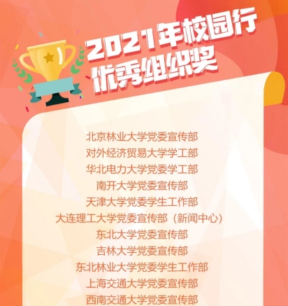 (新闻中心讯)近日,教育部中国大学生在线发布2021年度校网通站及校园行活动表彰名单,我校党委宣传部荣获“2021年校园行优秀组织奖”。