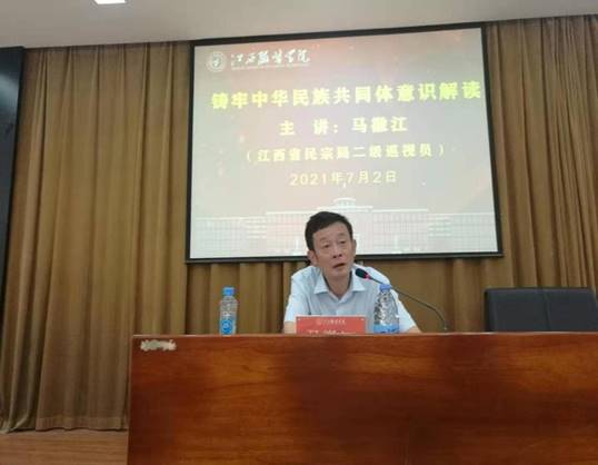 讲堂上,马徽江多层次深入分析党的民族政策,强调中华民族共同体意识是国家统一之基、民族团结之本、精神力量之魂;铸牢中华民族共同体意识,对做好新时代统战工作至关重要;加强民族团结,基础在于搞好民族团结进步教育,建设各民族共有精神家园。