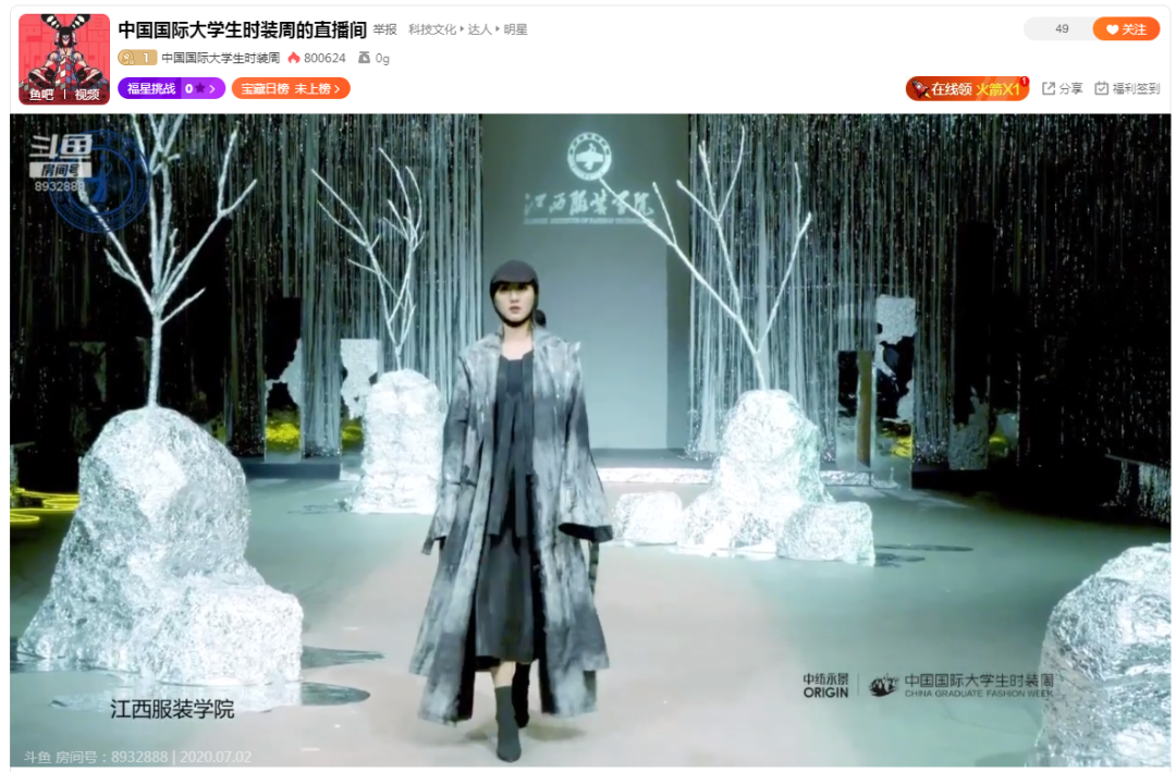 新闻中心讯 2020年,注定是不平凡的一年,一次新冠疫情,让中国国际大学生时装周姗姗来迟,不过,北京中纺永景与中国服装设计师协会共克时艰,将本次盛会搬上云端,让时尚不缺席。今夜,万象城平台优秀作品专场发布会在直播平台如约而至,正式亮相,接受了业界大咖、媒界记者和粉丝们的检阅。今年,江服携28位优秀学子设计的28个系列93套作品又一次在“声·生不息”中纺永景·2020中国国际大学生时装周上欣起“江服时尚风”。本次发布会的主题“知道”是延续2018年“知己”、接续2019年“知行”。“知”是一种学习,“道”是一种探索。本主题分为纯粹、释放、无界,三个篇章相得益彰,体现了设计师尊重设计本身,让三要素和谐共生。初生牛犊的江服“后浪”设计新秀们以夸张的设计、独特的剪裁、个性的色彩及创新的面料把艺术和时尚结合,为“大学生时装周”不一样的潮流色彩。充满乐观正能量又带着一点小叛逆的江服学子,带着对时代的认知和对生活的思考以及对流行的解读与创新,在秀场上碰撞出精彩夺目的创意火花,上演了潮度十足的视觉盛宴。