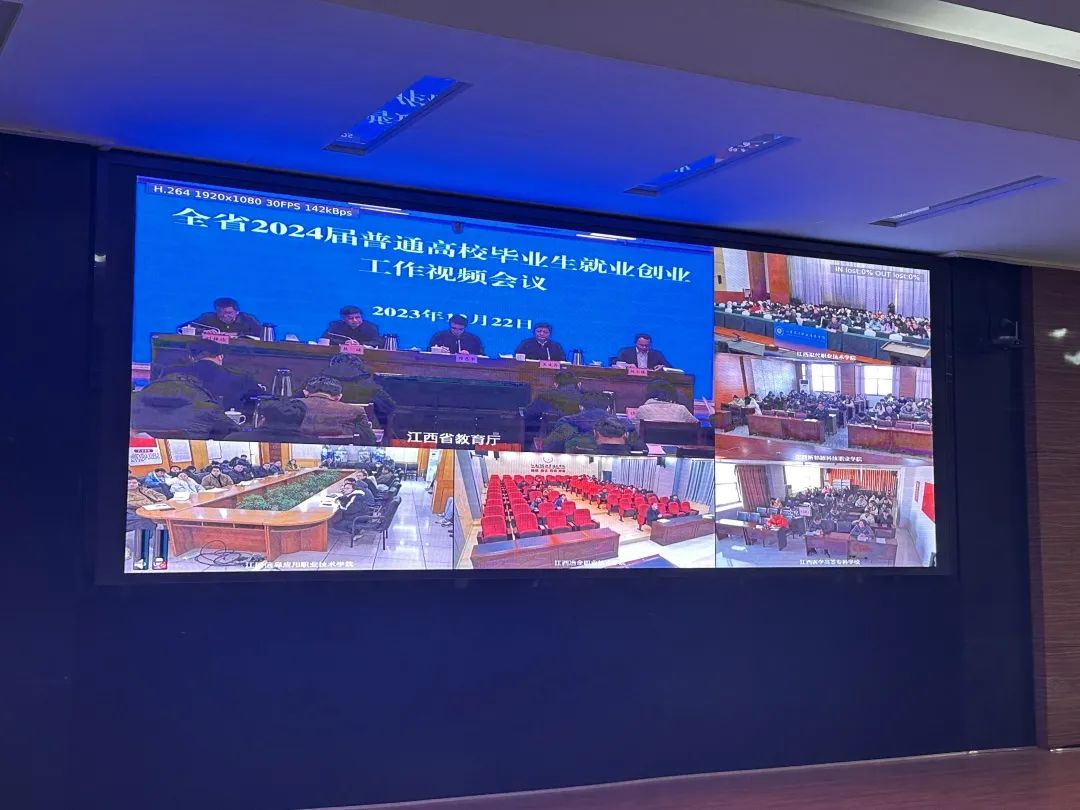 新闻中心讯(就业处供稿)为深入学习贯彻习近平总书记考察江西重要讲话精神,传达落实教育部2024届全国普通高校毕业生就业创业工作视频会议精神,12月22日下午2:30,省教育厅、省人力资源和社会保障厅组织召开了2024届全省普通高校毕业生就业创业工作视频会议。我校党委书记陈付龙、党委副书记唐新强出席会议,就业处、学工处、学生资助中心、教务处、财务处、武装部等部门负责人,各学院院长(副)、党委书记(副),各学院就业联络员以及2024届毕业班辅导员参加会议。