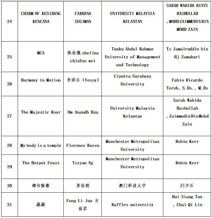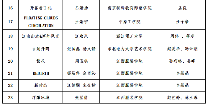 大学生时装设计与技能大赛入围名单