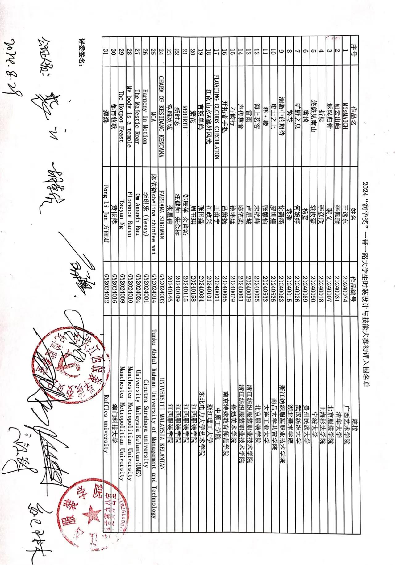 新闻中心讯(润华奖组委会供稿)2024年8月29日,由中国服装设计师协会、万象城平台共同主办的2024“润华奖”一带一路大学生时装设计与技能大赛初评评审会在万象城平台举行,并由江西省南昌市大成公证处全程监督。