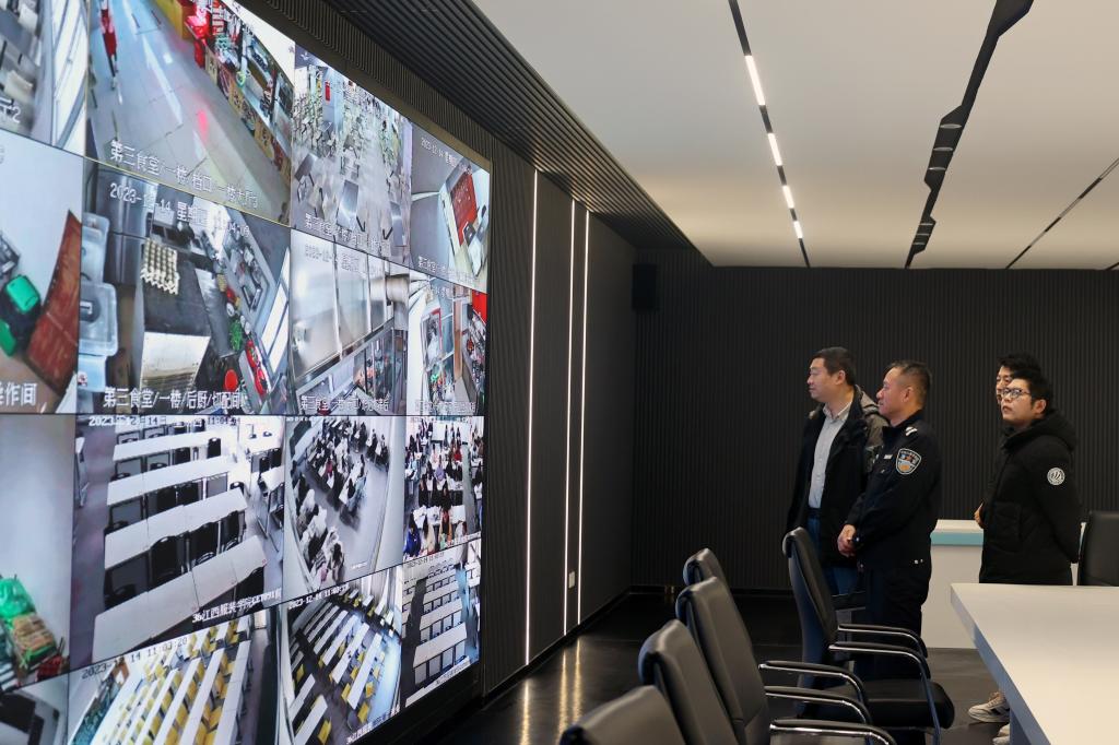 考评组现场对师生平安建设工作满意率做了测评。随后,考评组查阅了学校平安建设工作台账,实地查看了学校监控中心、主教学楼、校园110、实训中心、服饰博物馆等地。