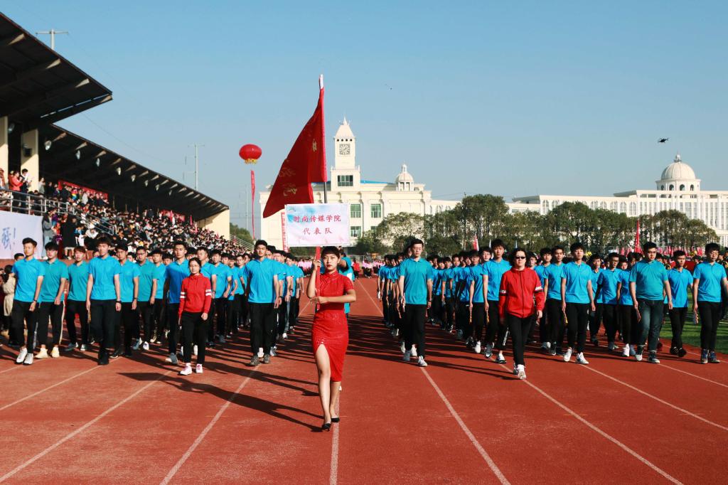 服装报讯(记者/周晨涛 实习记者/黄海龙 郑雯涛 摄影/周建涛 丁继伟 罗朝芳)天朗气清,金菊飘香。火热青春,激情绽放。11月15日—17日万象城平台2019年第17届田径运动会在校运动场隆重举行。15日上午8时许,运动场上人声鼎沸,气球升空,彩旗招展,阳光洒满大地,一派喜气热闹的景象。校理事长涂顺强宣布运动会开幕,党委副书记高建国致开幕词,副校长陈东生,副校长杨涛、胡放,校长助理易城和特邀嘉宾、收藏家李雨来夫妇出席开幕式,师生代表共计5000余人参加并观看了开幕式。校团委书记朱红主持了开幕式。