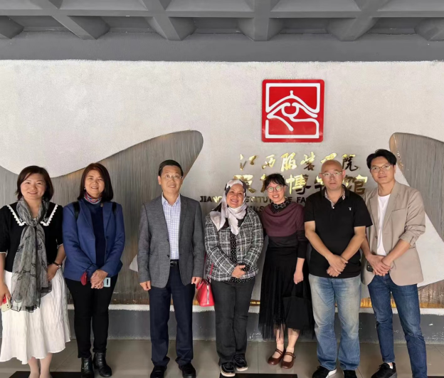会后,外宾一行在学校相关部门负责人陪同下参观了教学楼、中华服饰博物馆、教学实验实训基地及图书馆等场所。