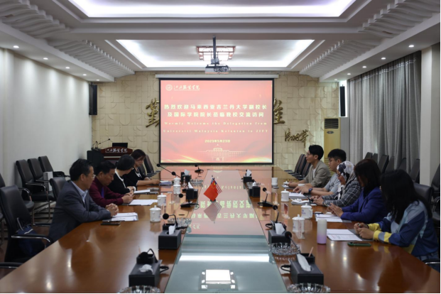 新闻中心讯(国际处撰稿) 5月23日上午,马来西亚吉兰丹大学(UNIVERSITI MALAYSIA KELANTAN)副校长Prof.Dr.Nik Maheran、国际学院院长Prof.Ng Siew Feon等一行五人到访我校,并进行校际合作交流洽谈。校长薛家宝出席并作交流讲话,国际合作与交流委员会副主任甘应进、国际交流与合作处负责人等参加了会议。会议由国际交流与合作处李金燕主持。