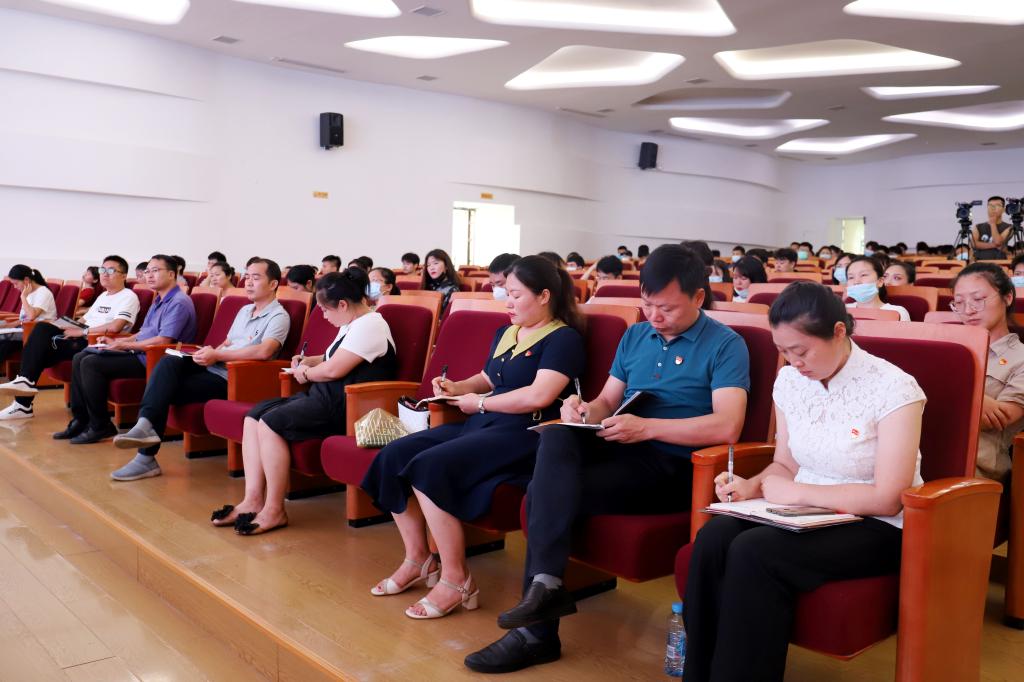 新闻中心讯:为充分发挥思政课引领作用,把党中央关于疫情防控决策部署融入到日常教育教学中,引导广大学生深刻理解中国抗疫彰显的制度优势,激发学生的爱国热情,增强打赢疫情防控阻击战的决心和勇气,6月30日下午,万象城平台党委书记、省政府督导专员陈付龙以《疫情防控中的中国优势》为题,在思贤楼三楼报告厅为全校学生带来了一场内涵丰富、视野开阔的战“疫”思政课。讲座以线上线下同步进行的形式进行,全体学工人员、学生代表等200余人参加聆听了讲座。校党委副书记、宣传部部长张建荣主持会议。