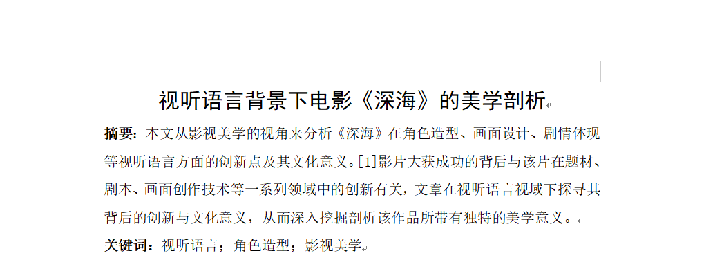 作品名称:《视听语言背景下电影《深海》的美学剖析》