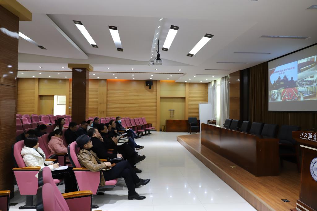 我校在行政楼一楼报告厅设立视频会议分会场,学校领导、宣传部、组织部、学工部(处)、马克思主义学院、各二级学院党总支书记等相关同参加此次视频会议。