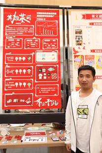 2017级广告学本科1班学生吴其右同学介绍自己的设计作品“英雄基因”时说:“在南昌读书四年使我感受最深,对我影响最大的就是红色文化,设计开发出更好更多的文创产品传承红色基因是我的责任和使命。”