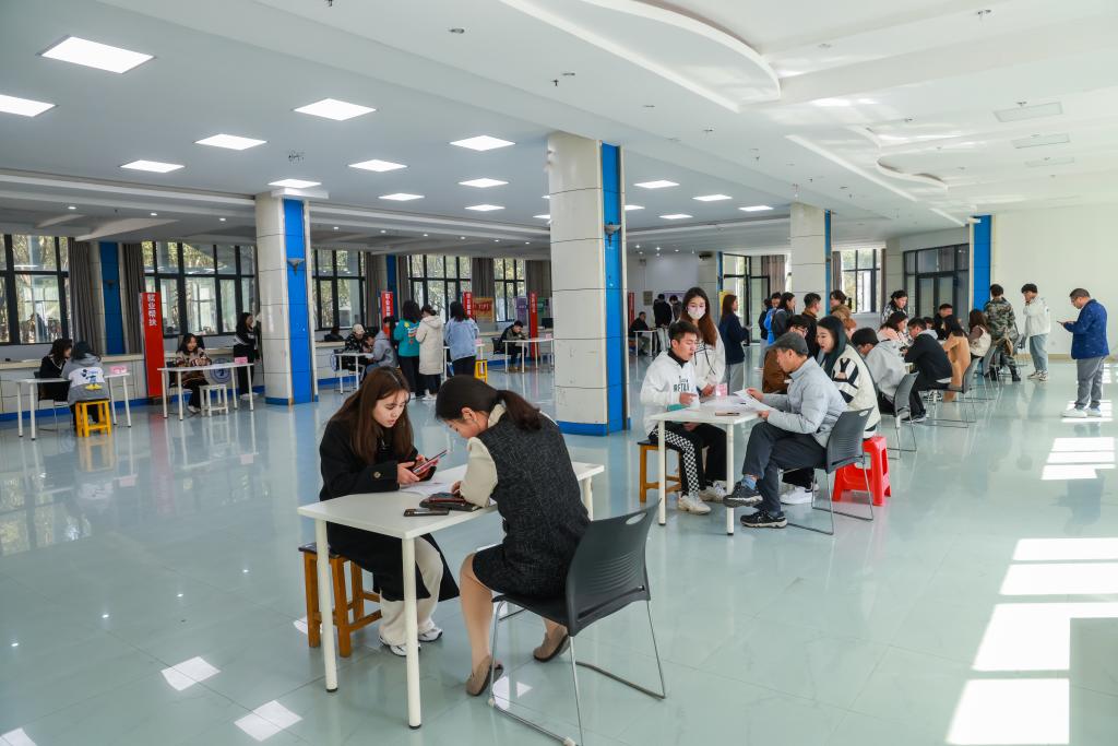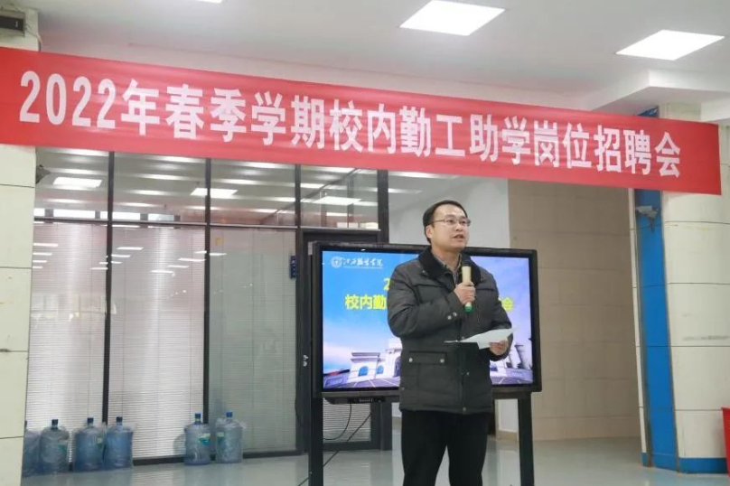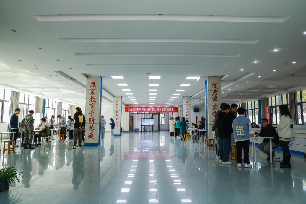 新闻中心讯 3月8日下午,我校在思贤楼二楼大厅举办2022年春季学期校内勤工助学招聘活动,学校提供勤工助学岗位的用人部门到场参与现场招聘,校党委副书记唐新强莅临招聘现场,招聘活动吸引了百余名学生参加,招聘会由学生资助管理中心主任余晓萍主持。