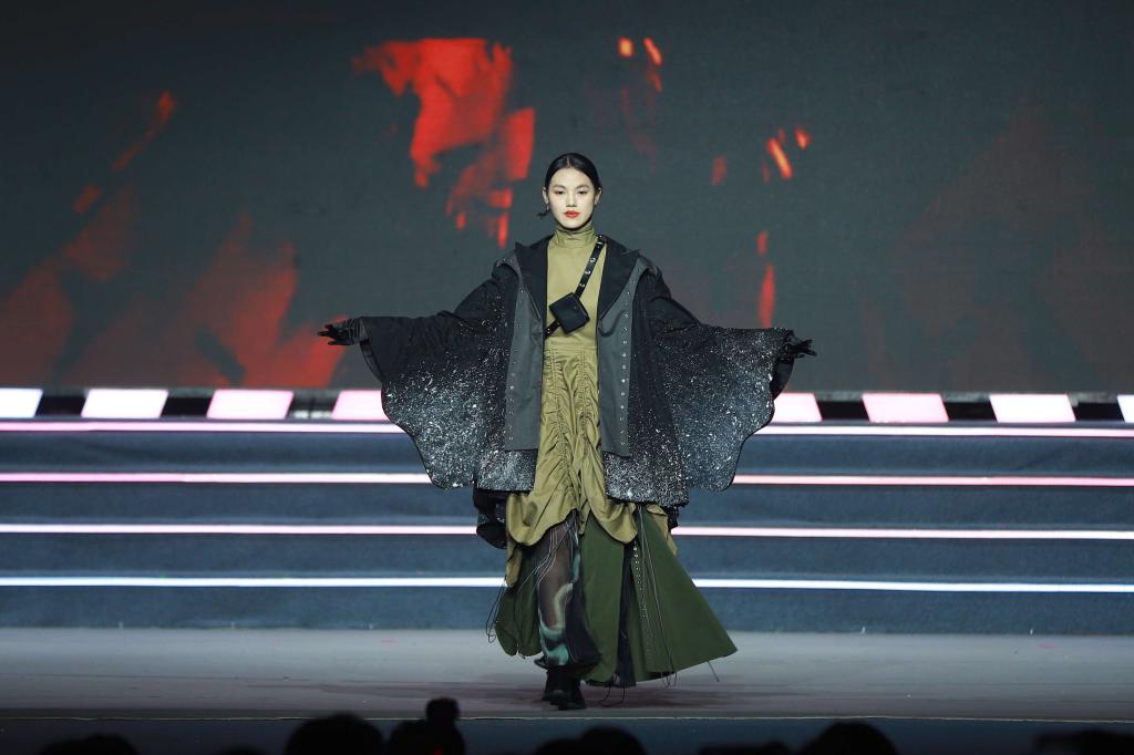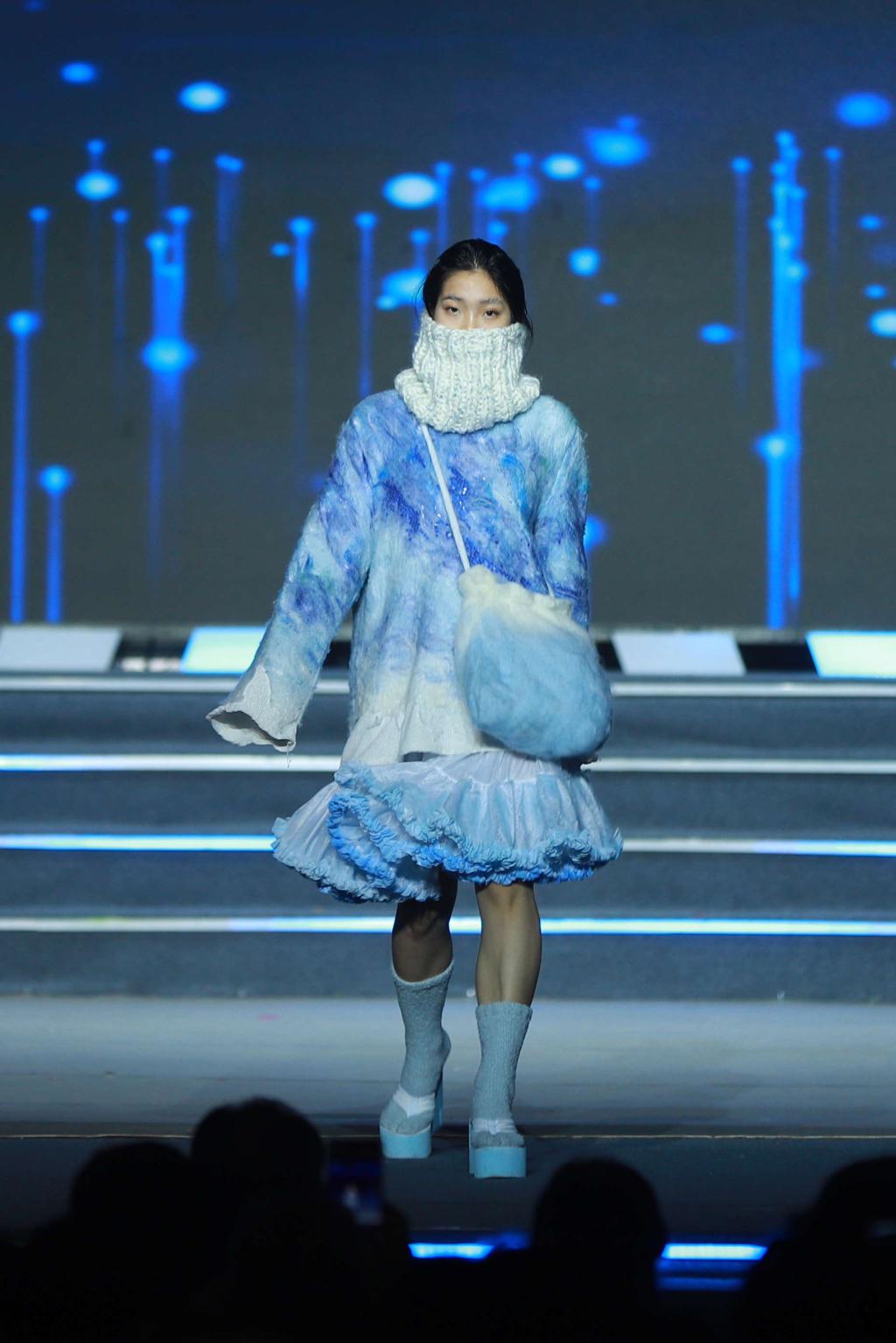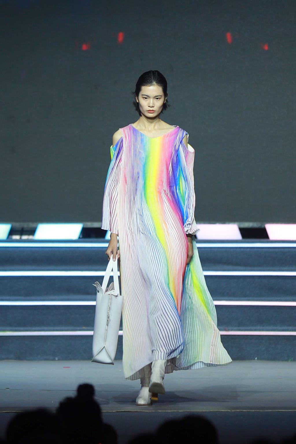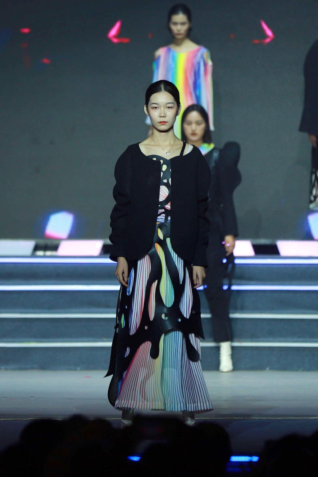 服装秀比赛环节,我校模特专业的学生身着充满创意和美学元素的各式服装逐一登场,伴随着动感的音乐节奏,热力值不断攀升,一件件别出心裁、匠心独运的服装成衣设计作品赢得了观众们的惊叹。我校服装专业新锐设计师们以勤信博雅的态度,秉持对社会的责任感,以设计作品探寻时尚未来的发展方向。参加比赛的33个系列的130余套作品在设计风格、设计理念、表现手法、工艺特色等方面各有千秋。参赛作品大量使用了面料再造的方式,通过传统工艺解构经典设计元素,加入时代活力,传统与现代完美结合。作品饱含着江服学子对当下生活的思考和对国际流行的关注,他们以服装为载体、以设计为手段,表达着自我的思想与见解,展现了江服新时代青年的朝气与创造力,更是学校人才培养的硕果。丹霞似锦,江服设计新锐们手中一针一线编织的霓彩华裳,完美地融入江服师生喜迎30周年校庆喜悦的氛围中。