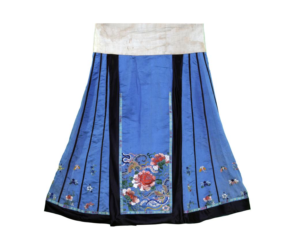 清中期 | 蓝缎五彩绣蝶恋花阑干裙