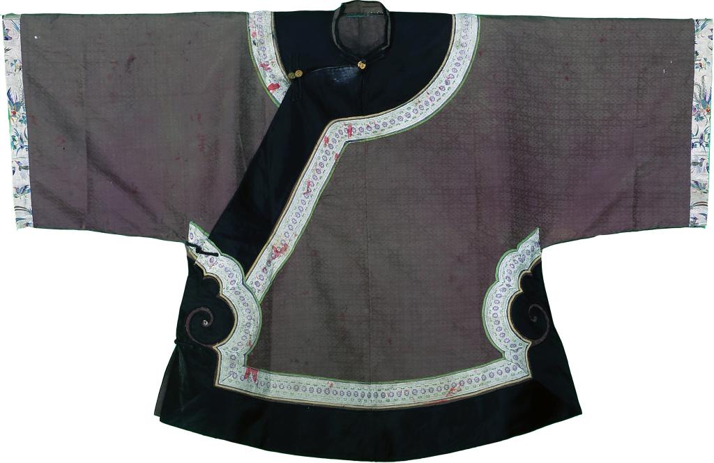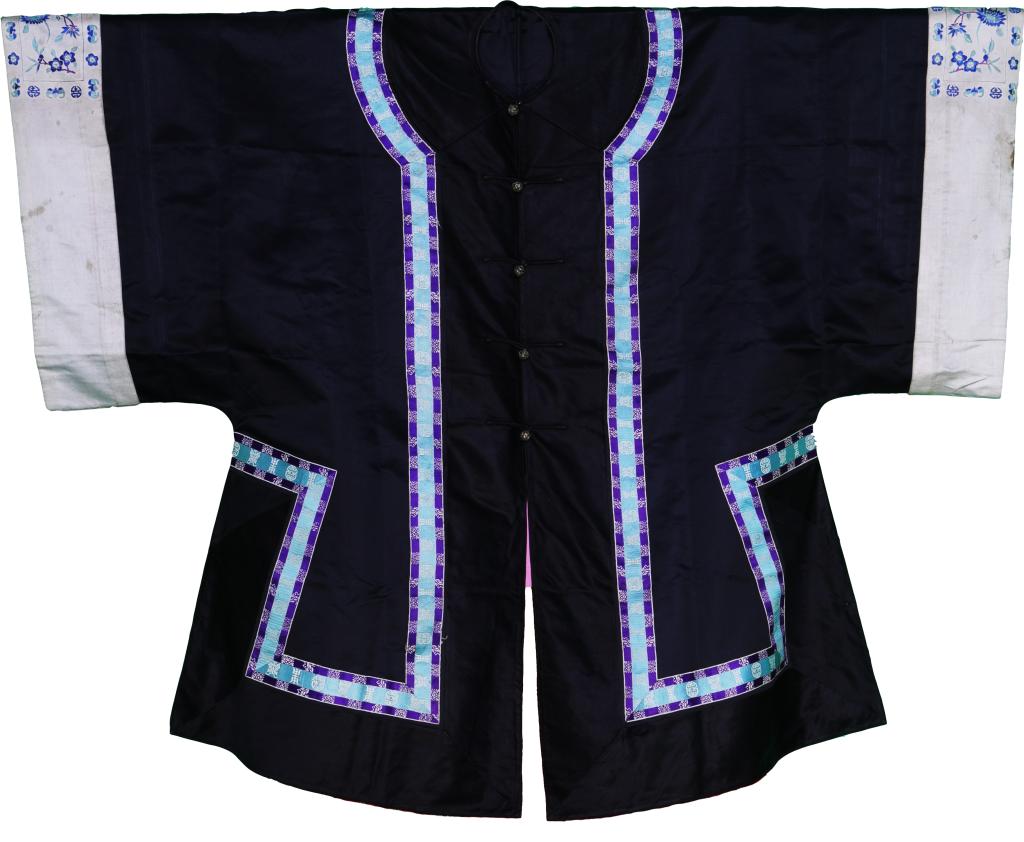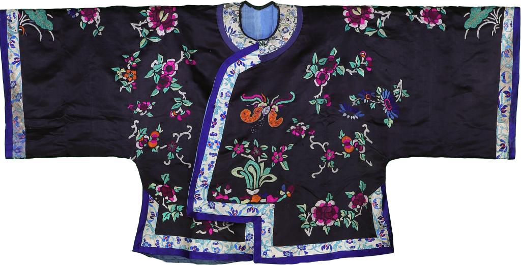 清 | 黑色缎地花蝶纹琵琶襟马褂