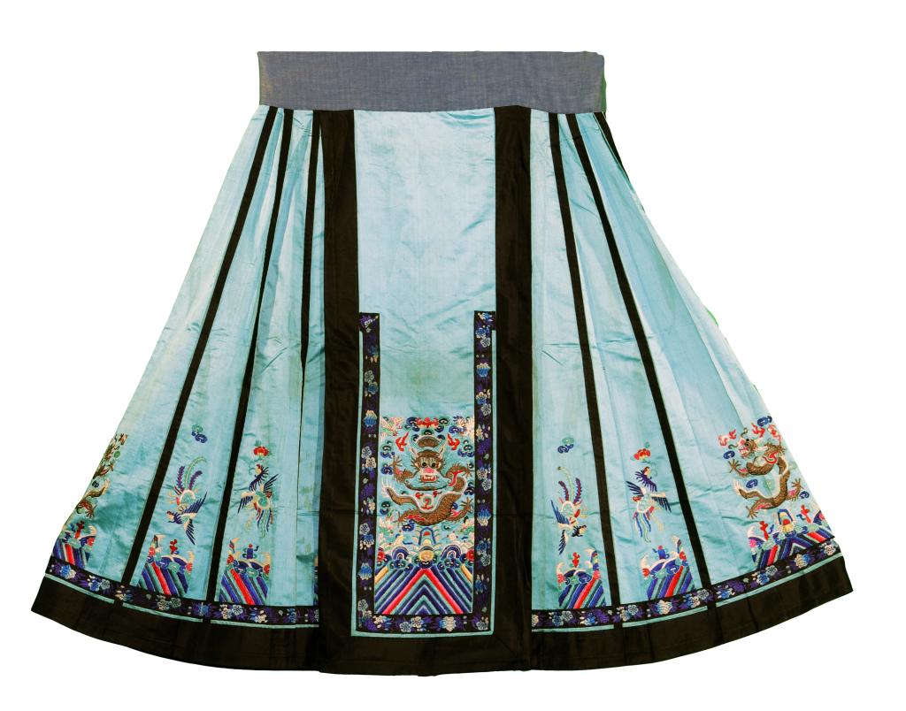 清 | 湖蓝缎四龙八凤纹阑干裙