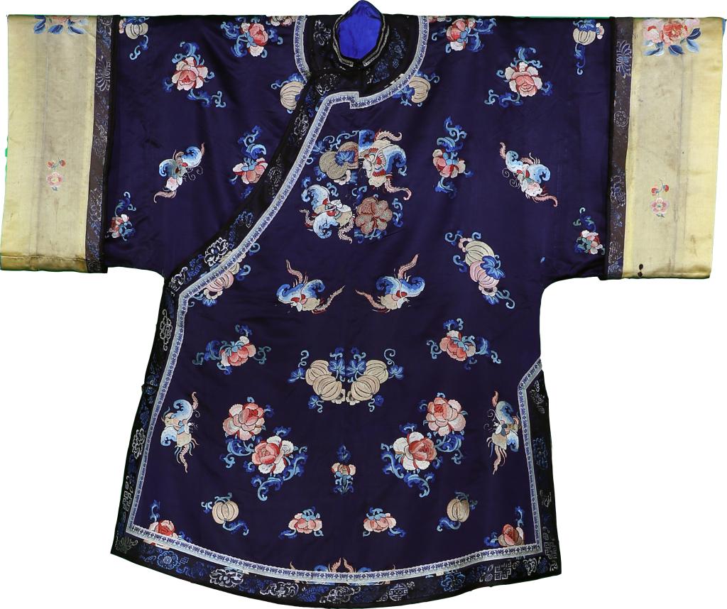 本次展览以清代女性服装为主线,选取了20余件在形制、材质、装饰和工艺等方面均具有代表性和观赏性的服装,集中展现出晚清、民国初期中国女性最为普遍的一些服饰类型及其风格特点,同时也能充分体现出当时的各类刺绣技法,如三蓝绣、五彩绣、打籽绣、盘金绣等的精彩技巧。