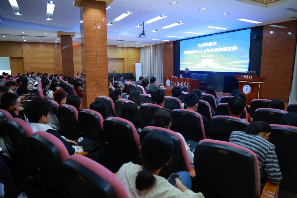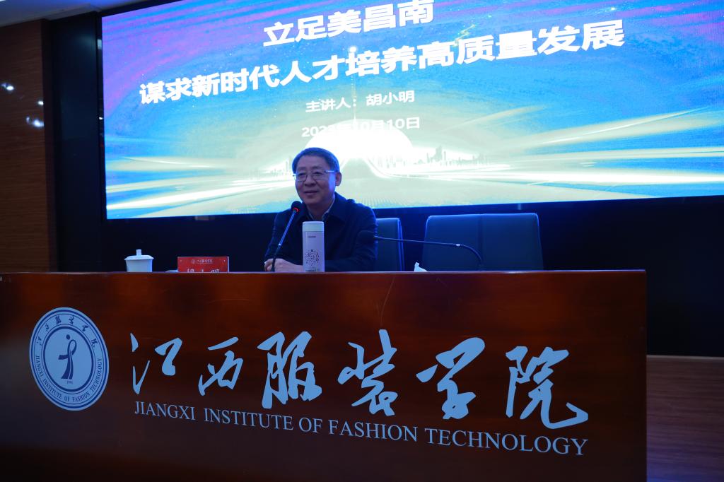 胡小明以《立足美昌南 谋求新时代人才培养高质量发展》为题,从“千年古县南昌县”“鱼米之乡南昌县”“全国百强南昌县”三个方面,详细讲解介绍了学校所在地——赣鄱明珠——南昌县。他首先从南昌县的建县历史、历史遗迹、俊采人物等方面进行了讲解“千年古县南昌县”;随后他从“名副其实的鱼米之乡”“得天独厚的鱼米之乡”“特征明显的鱼米之乡”三个方面介绍了“鱼米之乡南昌县”;接着从南昌县的主要经济数据、经济基础厚度、社会事业进步,特别是南昌县教育事业的发展进步等方面进行了介绍作为连年进位至全国第18位的“全国百强南昌县”。