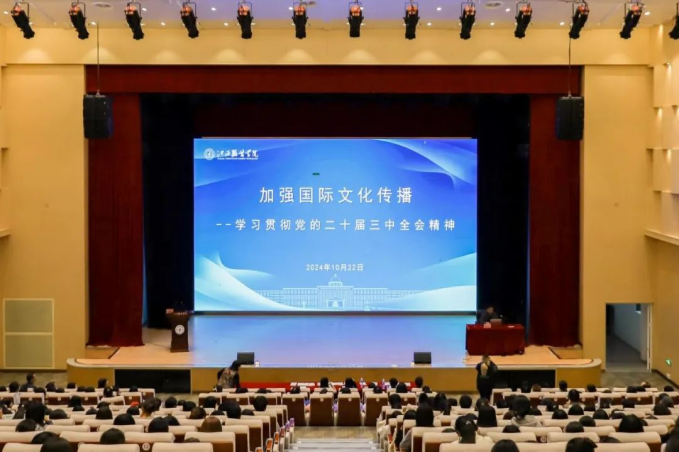 新闻中心讯(人文学院供稿)为学习贯彻党的二十届三中全会精神,加强国际文化传播,提升商务英语专业学生的跨文化交际能力,10月22日,我校人文学院邀请校长薛家宝作了一场题为“学习贯彻党的二十届三中全会精神 加强国际文化传播”的专题报告。报告会由人文学院院长邹晓春主持。