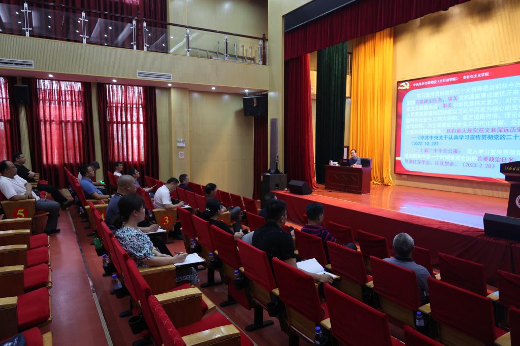 学习期间,全体学员集中聆听了中共萍乡市委党校一级调研员黎雪源同志以《高举伟大旗帜 奋进新的征程——党的二十大精神解读》为题的专题党课。 黎雪源对党的二十大精神进行了深入浅出的阐释和宣讲,推动党的二十大精神入脑入心,激发了全体学员踔厉奋发、团结奋斗的精气神。