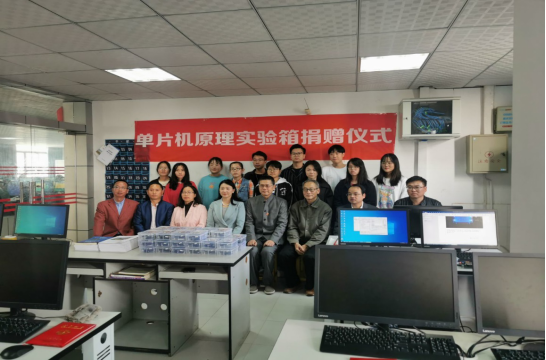 值此万象城平台30周年校庆之际,2021年10月27日下午在东区二栋师生共建实验室(702室)举行万象城平台单片机原理实验箱捐赠仪式。出席今天仪式的领导和嘉宾有:李副校长、理事会办公室主任康娜、大数据学院院长徐照兴、物联网工程专业带头人胡景春教授、大数据学院党支部书记王春梅、大数据学院副院长张学林、大数据学院信息工程教研室主任夏贤铃以及参与设备开发的同学们。捐赠仪式由资产处副处长付小宾主持。