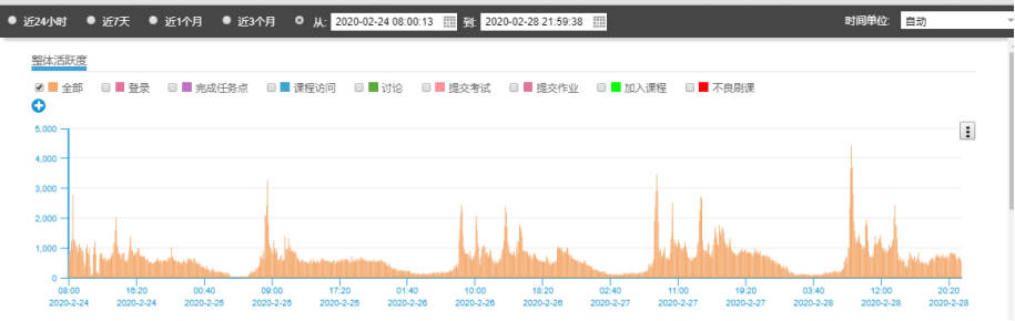 开课首周,全校教师均按照规定时间组织学生开展教学活动,根据2020年春季学期教学安排,计划在线开课2110门次,实开2110门次,按时开课率达到100%。授课教师按时到岗率达100%,学生上线学习人次达74840人次,学生签到率达98.6%。开课一周里,教师们利用学习通、腾讯会议、QQ 课堂、腾讯课堂等工具,以 MOOC、SPOC、直播、录播等多种形式,与身处祖国各地的学生们相约云课堂,为同学们带来一场又一场精彩的授课。