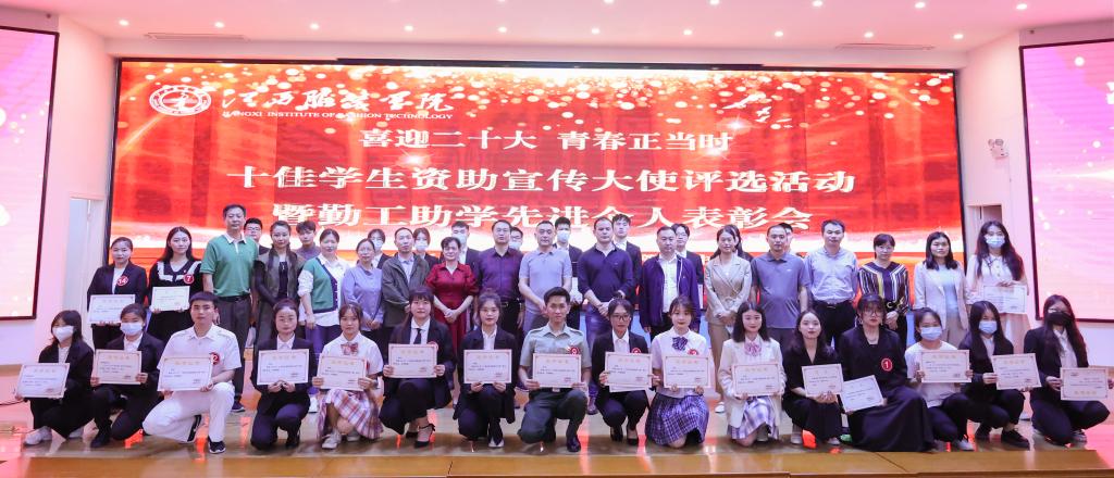 为进一步加大我校学生资助宣传力度,增强资助政策宣传效果,培养受资助学生的社会责任感和感恩意识,5月24日,我校在思贤楼三楼报告厅举办2022年“十佳学生资助宣传大使”评选活动暨勤工助学先进个人表彰会。校党委副书记唐新强,校党委副书记、副校长李宝君出席活动,宣传部部长沈新建、学工处处长邓良峰以及部分学工人员参加活动。全校学生通过线上平台观看直播,各学院党总支书记(副)担任评委。