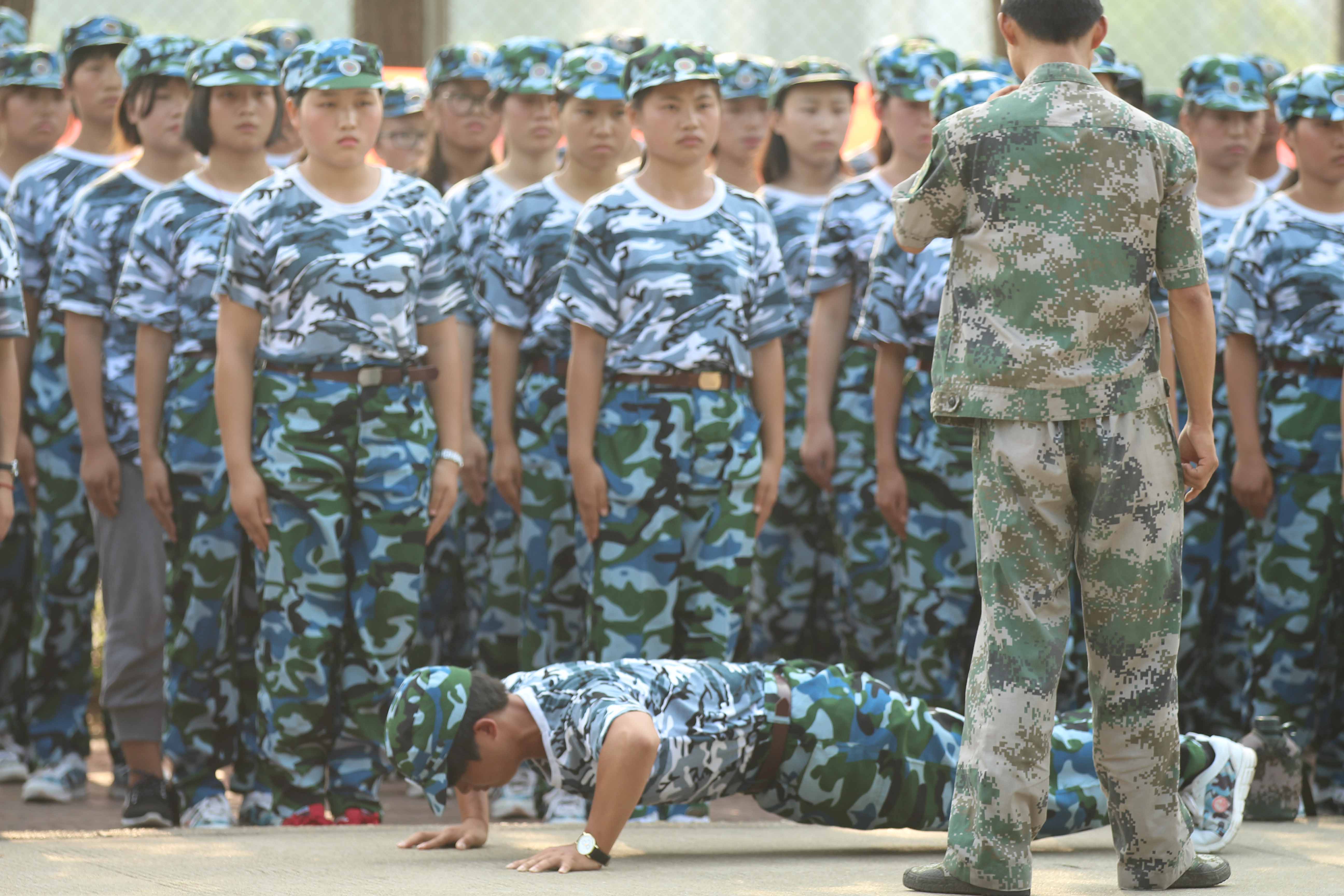 “一二一,一二一、立正、正步走!......”军训场上,整齐响亮的口号无处不在,响彻了整个校园。记者步入了军训训练场地,看到很多连队的训练教官正在严格高标准的要求自己的学员们。“没有累得连楼梯都爬不上去,就说明训练得不够投入!”设计1连的教官在训导这群所谓的“新兵蛋子”,教官的严格让很多的“新兵”感到紧张和害怕,如果犯了错,教官会用“俯卧撑、深蹲、站军姿”等一些象征性的惩罚,惩罚措施不可怕,同学们更怕的是被罚时连队里其他同学火辣辣的目光,所以每一名同学都训练得认真投入。