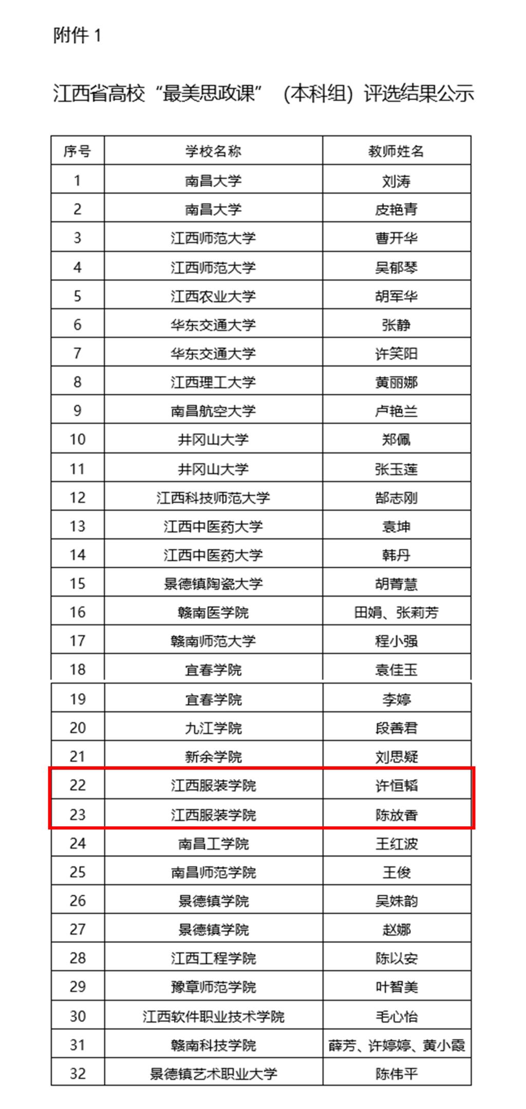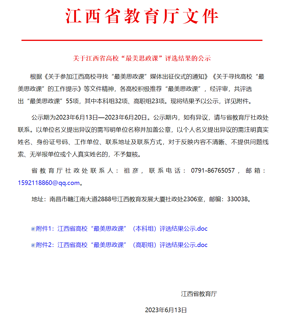 新闻中心讯(马克思主义学院供稿)根据《关于参加江西高校寻找“最美思政课”媒体出征仪式的通知》《关于寻找高校“最美思政课”的工作提示》等文件精神,各高校积极推荐“最美思政课”,经评审,共评选出“最美思政课”55项,其中本科组32项、高职组23项。我校马克思主义学院许恒韬老师主讲的《中国化时代化的马克思主义行》、陈放香老师主讲的《文化有大美 自信以持之》两项作品均评选为江西省高校“最美思政课”。