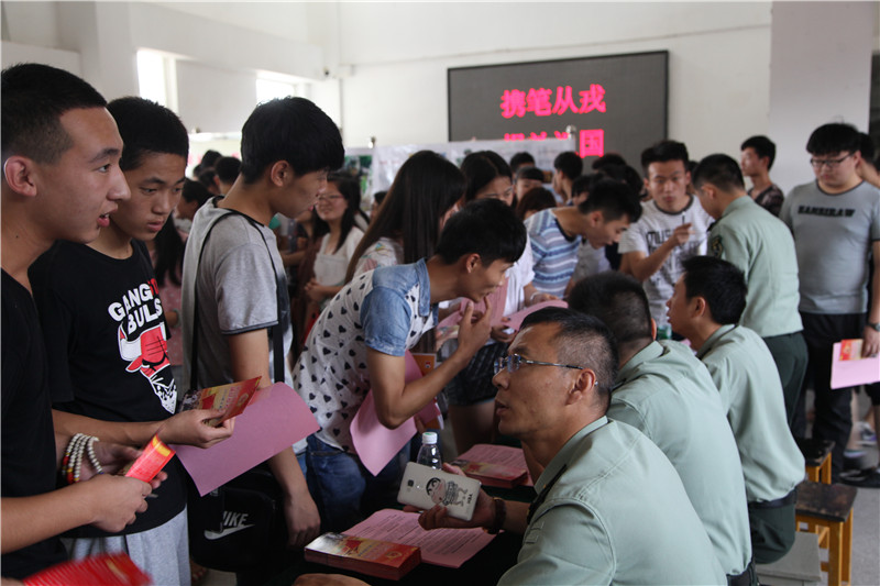 活动通过发放宣传资料、现场咨询、展板、公告栏等形式开展。南昌县武装部的工作人员向同学们详细介绍了今年征兵工作的相关规定、程序方法、应征条件及大学生参军入伍的优惠政策,耐心细致的解答了同学们提出的问题。发放了《2015年义务兵征集宣传册》,号召和鼓舞适龄青年积极投身国防和军队建设。本次征兵宣传咨询活动收效良好,吸引了众多学生前来咨询,为我校今年的征兵工作打下了良好的宣传基础。