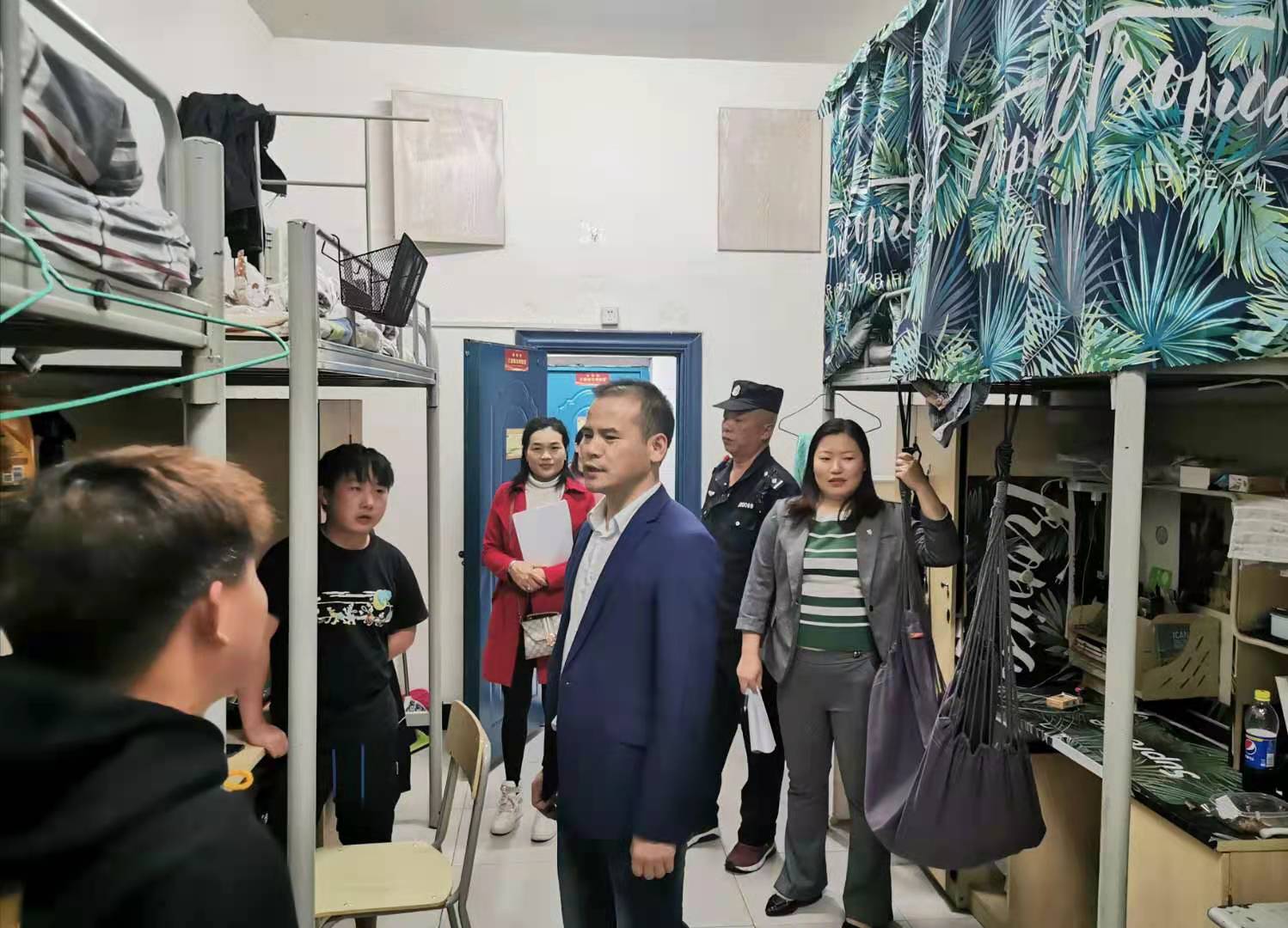 在检查中,唐新强走访了清河区、清源区、清澜区学生宿舍,检查了宿舍安全卫生情况。唐新强与学生亲切交流,了解同学们宿舍生活、安全卫生、专业学习等方面情况,叮嘱同学们要增强自律意识,珍惜大学时光;并提醒学生要保持好宿舍环境卫生,尤其要注意宿舍用电安全。