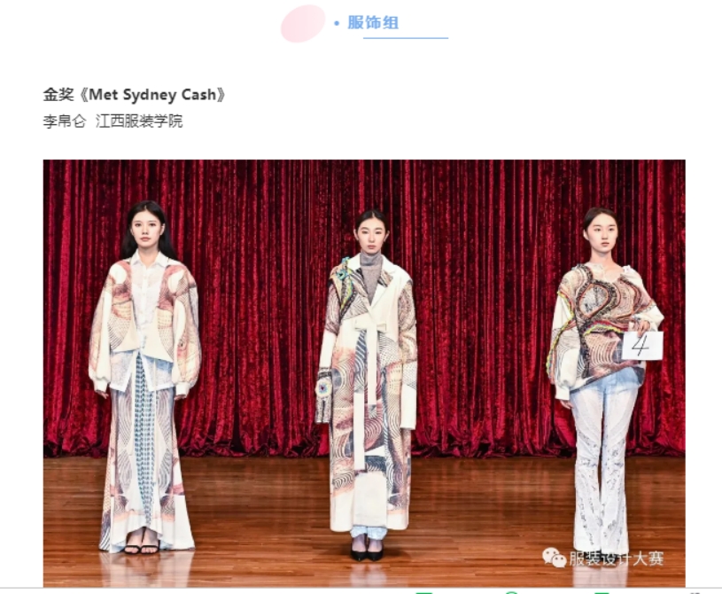 (新闻中心讯 记者:赵欣慧)9月11日,由北京服装纺织行业协会、北京时装设计师协会、北京时尚控股有限责任公司联合指导,北京雪莲集团有限公司、北京时装周有限责任公司主办的第五届“雪莲杯”羊绒服饰及手编作品创意邀请赛决赛圆满落幕。我校李帛伦同学凭借作品《Met Sydney Cash》获得本次比赛金奖。